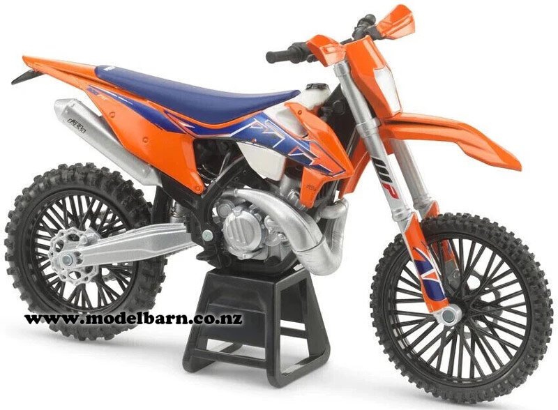 1/12 KTM 300 EXC-TPI Motorbike. Made by NewRay. Features steerable front wheel. This motorbike is 180mm long, 66mm wide & 105mm high.