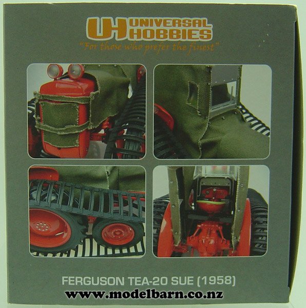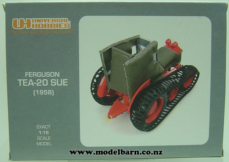 1/16 Ferguson TEA-20 Tractor on Tracks. Made by Universal Hobbies. Features movable tracks, precision detail. Does not attach to any implements. This is a used item in excellent condition but may have minor imperfections. Its box is in fair condition & has marks, creases & tears. Only 1 available. This tractor is 200mm long, 120mm wide & 125mm high.