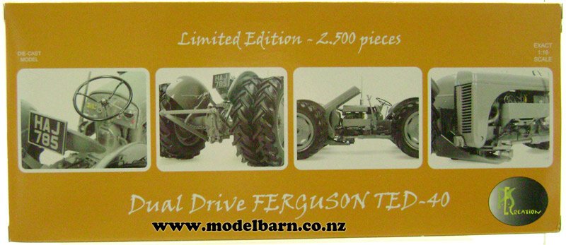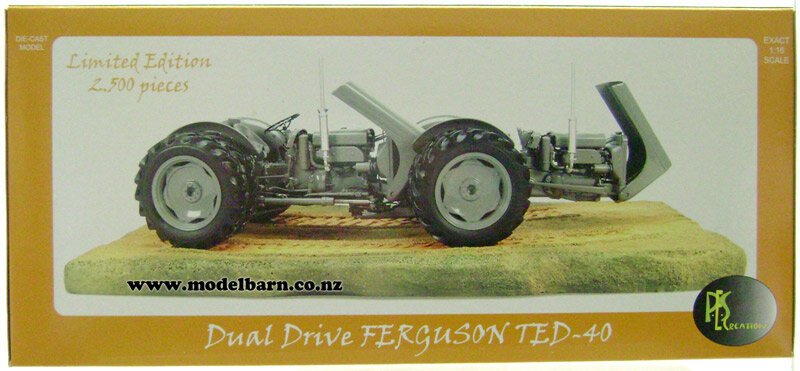 1/16 Ferguson TED-40 4WD Dual Drive Tractor. Made by Universal Hobbies in 2008. Features pivot steering, opening bonnets, precision detail. It does not attach to any implements. This is a used item in very good condition but may have minor imperfections. Its box is in fair condition & has marks, creases & tears. Only 2500 have been made of this limited edition. Only 1 available. Comes with a medalion & certificate. This tractor is 335mm long, 130mm wide & 120mm high & comes on a display plinth.This item is not suitable for children.Only 1 Ferguson TED-40 Dual Drive Tractor was made. It has now been restored.
