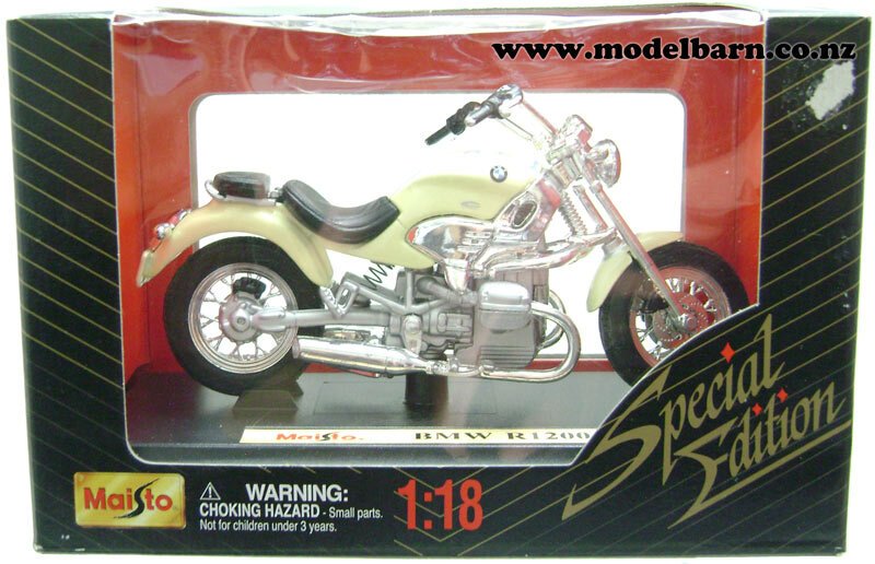 1/18 BMW R1200C Motorbike. Made by Maisto. Features steerable front wheel, nice detail. This is a used item in good condition but may have small imperfections. The box is in good condition & has some marks, creases, tears & fading. Only 1 available. This motorbike is 135mm long, 55mm wide & 66mm high & comes on a plinth.This item is not suitable for children under 8.