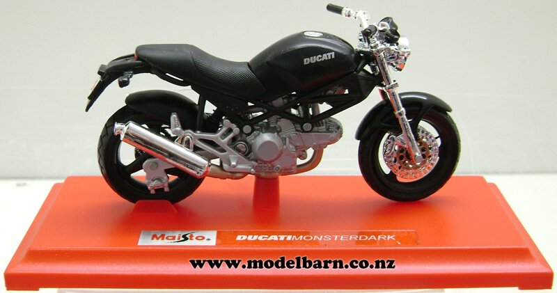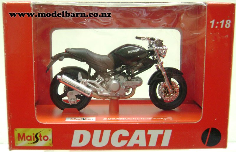 1/18 Ducati Monster Dark Motorbike. Made by Maisto. Features steerable front wheel, nice detail. This is a used item in good condition but may have small imperfections. The box is in good condition & has some marks, creases, tears & fading. Only 1 available. This motorbike is 117mm long, 42mm wide & 61mm high & comes on a plinth.This item is not suitable for children under 8.