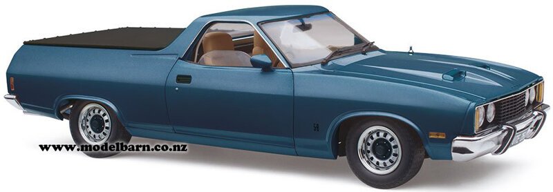 1/18 Ford XC Utility Vehicle. Made by Classic Carlectables. Features right-hand drive, steerable front wheels, opening bonnet, detailed Cleveland 5.8 litre (351ci) V8 engine, working suspension, opening doors, detailed interior, opening tailgate, removable cover, precision detail. Only 750 will be made in this "Midnight Blue" livery. Comes with Certificate of Authenticity. This vehicle is 275mm long, 105mm wide & 75mm high.