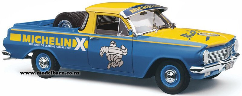 1/18 Holden EH Utility Vehicle. Made by Classic Carlectables as No 3 in their "Radial Collection" series. Features right-hand drive, steerable front wheels, opening bonnet, detailed 149ci engine, working suspension, opening doors, detailed interior, opening tailgate, precision detail. Only 1000 will be made in this "Michelin" livery. Comes with Certificate of Authenticity. This vehicle is 250mm long, 95mm wide & 80mm high.