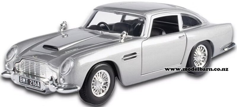 1/24 Aston Martin DB5 Car. Made by Motor Max as part of their "James Bond Collection". Features right-hand drive, opening doors, nice detail. This is a commemorative model from the James Bond movie "Goldfinger". This car is 190mm long, 72mm wide & 54mm high.This item is not suitable for children under 8.