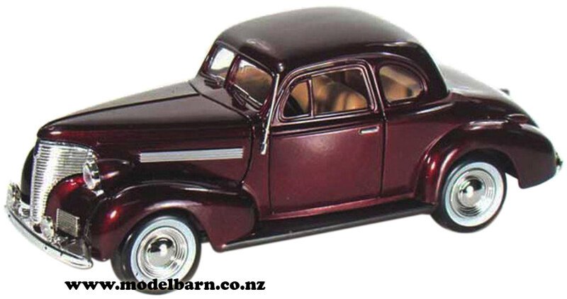 1/24 Chevrolet Coupe Car 1939. Made by MotorMax. Features left-hand drive, opening doors, opening bonnet, detailed engine, opening boot, nice detail. This car is 197mm long, 78mm wide & 70mm high.