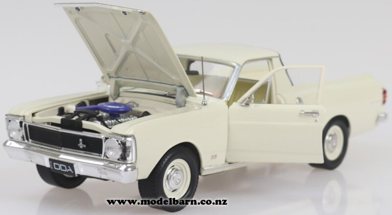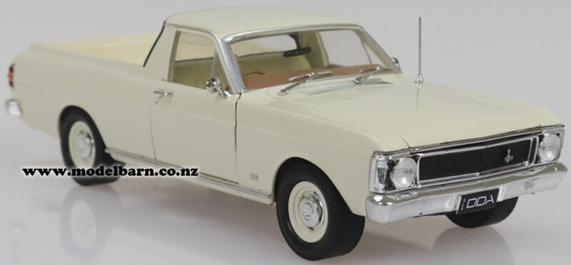 1/24 Ford XW Falcon Ute 1969. Made by DDA Collectibles Australia. Decorated in "White" livery & features right-hand drive, opening doors, opening bonnet, detailed engine, opening tailgate, very nice detail. This vehicle is 197mm long, 78mm wide & 60mm high.