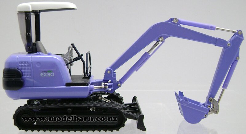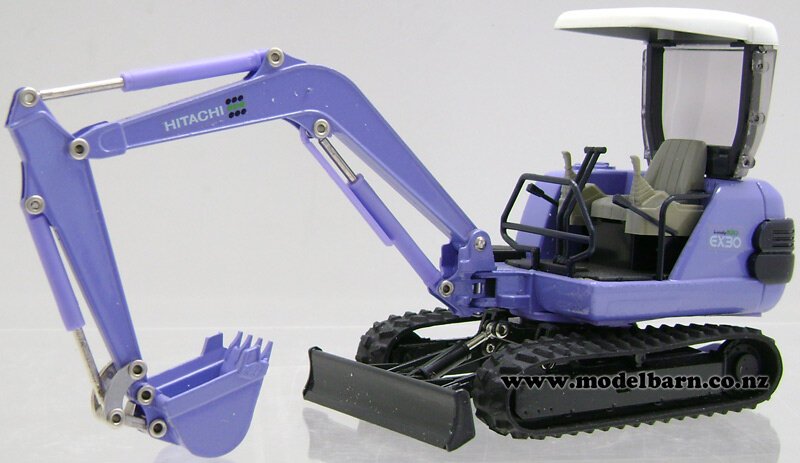 1/24 Hitachi EX30 Mini Excavator with Blade. Made in Japan. Features rubber tracks, movable blade, movable arms & tipping bucket, rotating cab, nice detail. This is a used item in good condition but may have imperfections. Its box is in good condition but has marks, creases & tears. Only 1 available. This excavator is 247mm long, 63mm wide & 165mm high (when fully extended).This item is not suitable for children.
