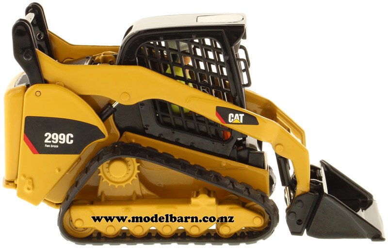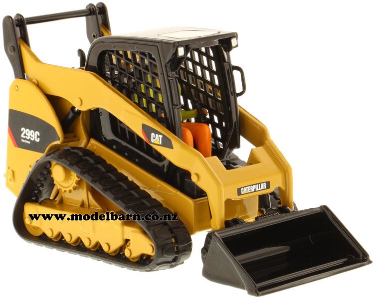 1/32 Caterpillar 299C Skid Steer Loader on Tracks. Made by Diecast Masters as part of their "Core Classics" series. Features rubber tracks, movable arms & tipping bucket. Comes with 3 interchangeable attachments: bucket, grapple & pallet forks. Comes with operator in the cab. This skid steer loader is 121mm long, 60mm wide & 70mm high.This item is not suitable for children under 14.