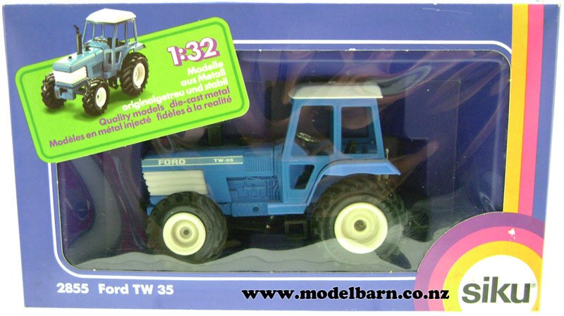 1/32 Ford TW-35 4WD Tractor. Made by Siku from 1985 - 1990. Features removable cab, steerable front axle. Attaches to most 1/32 implements. This is a used item in very good condition. The box is in good condition but does have some marks & blemishes & fading. Only 1 available. This tractor is 145mm long, 68mm wide & 93mm high.This item is not suitable for children.