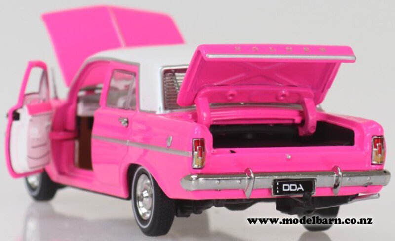1/32 Holden EH Sedan Sedan Car. Made by DDA Collectibles Australia. Decorated in "Hot Pink" livery & features right-hand drive, steerable front wheels (not recommended though as the steering is fragile), detailed interior, opening doors, opening bonnet, detailed engine, opening boot, very nice detail. This vehicle is 145mm long, 53mm wide & 45mm high.This item is not suitable for children.
