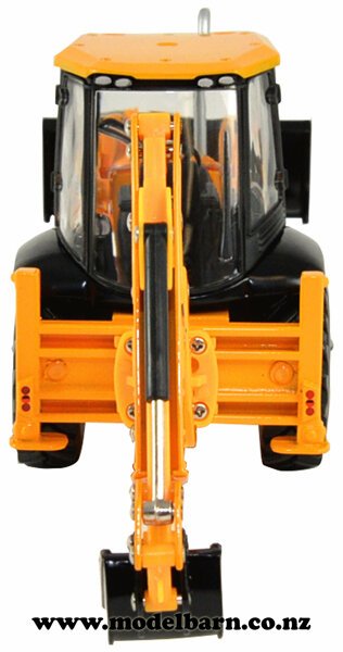 1/32 JCB 3CX Backhoe Loader. Made by Britains. Features steerable front wheels, movable arms & tipping buckets, side shift backhoe. This backhoe loader is 342mm long, 81mm wide & 150mm high (when fully extended).