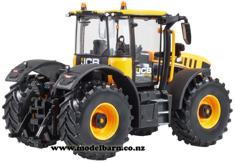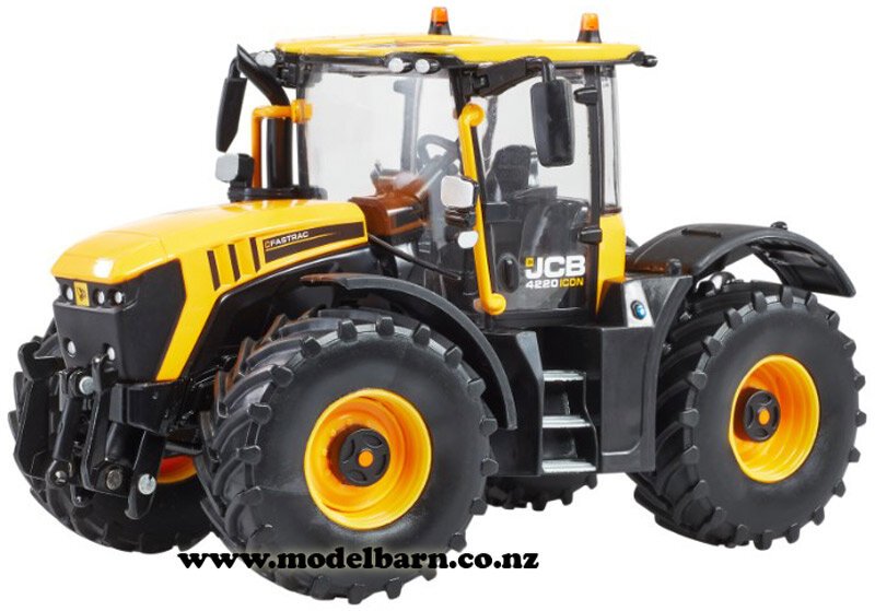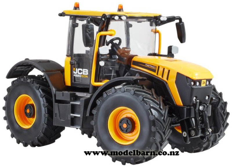 1/32 JCB 4220 Fastrac ICON Tractor. Made by Britains. Features steerable front wheels, front & rear hitch, nice detail. Attaches to most 1/32 implements. This tractor is 178mm long, 81mm wide & 95mm high.