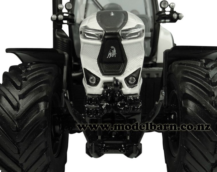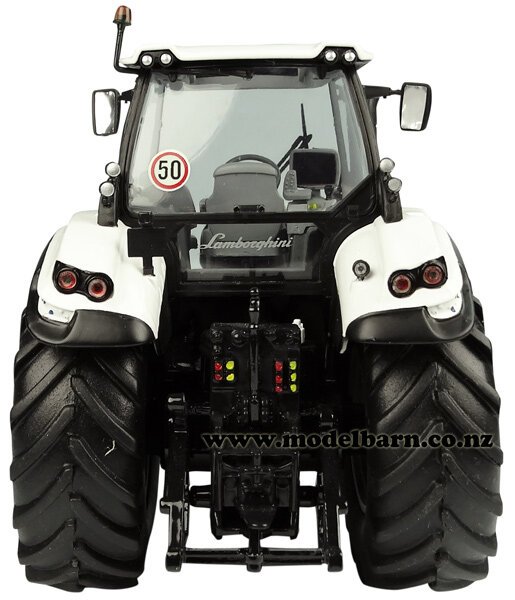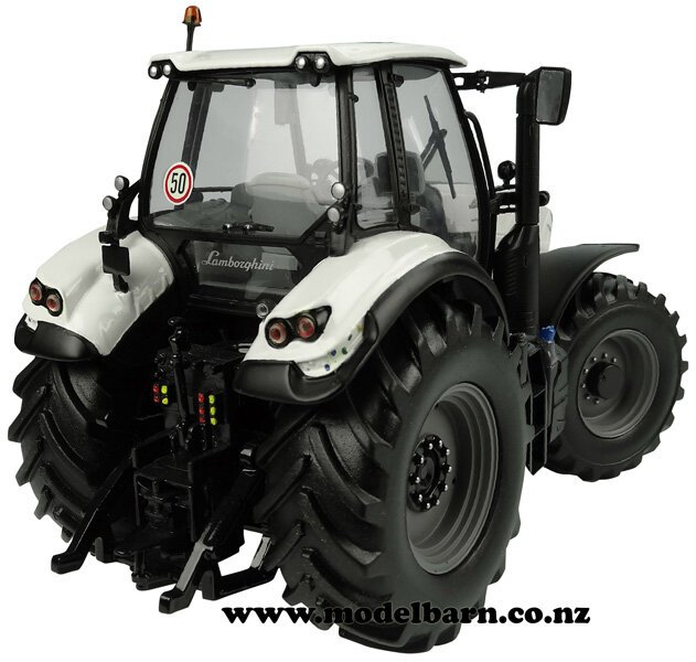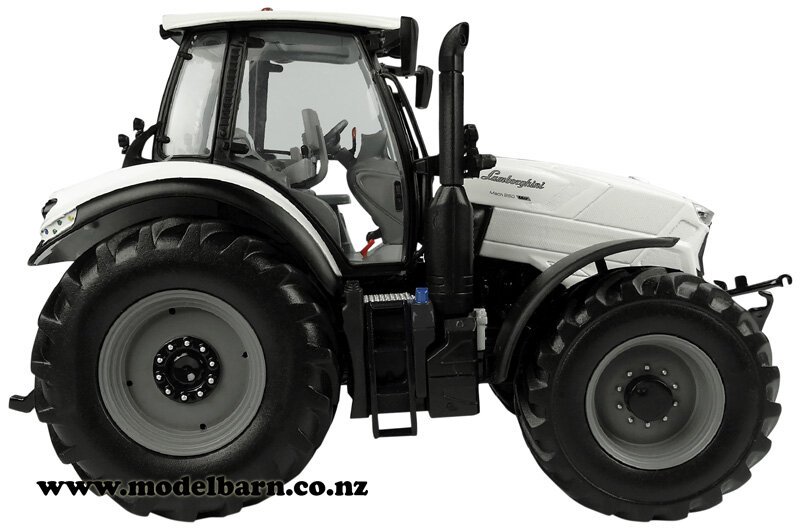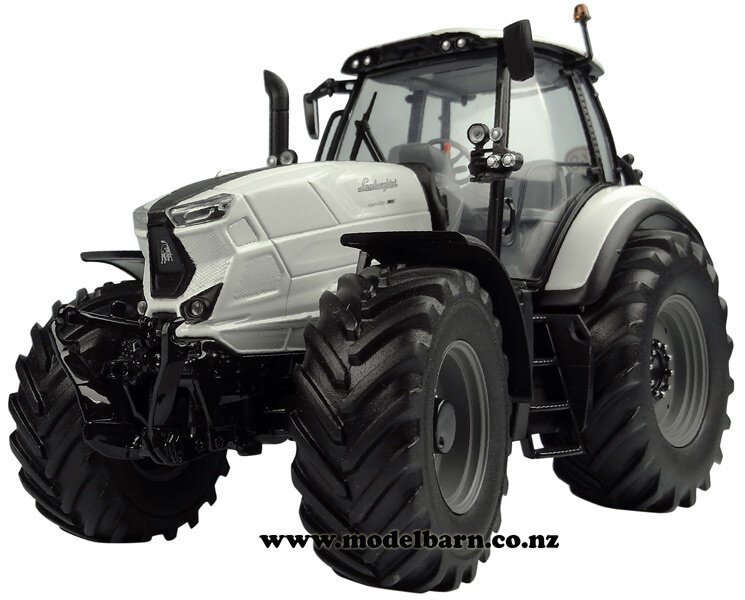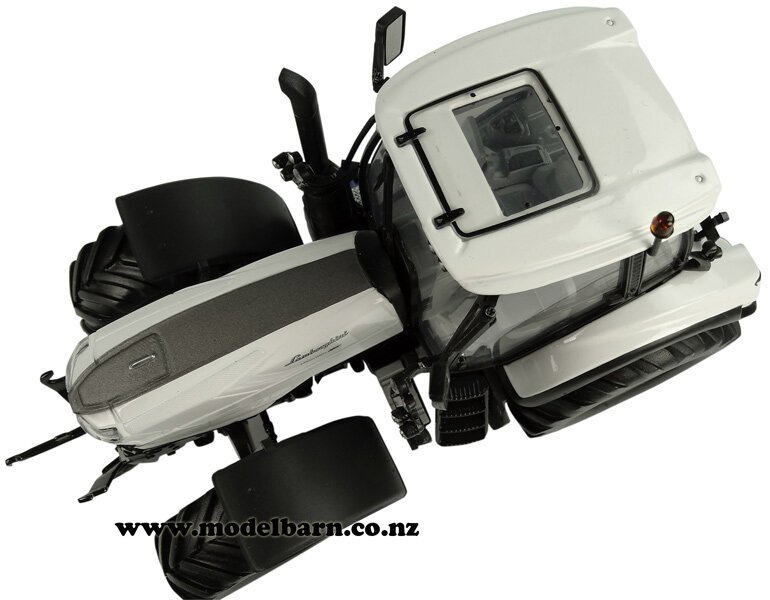 1/32 Lamborghini Mach 250 VRT Tractor. Made by Universal Hobbies. Features steerable front wheels, front hitch, retractable mirrors, very nice detail. Attaches to most 1/32 implements. This tractor is 170mm long, 78mm wide & 110mm high.