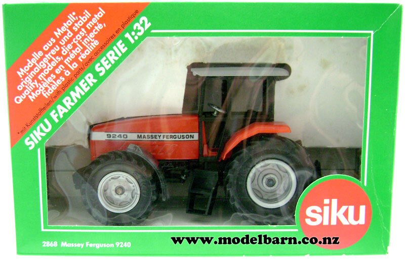 1/32 Massey Ferguson 9240 Tractor. Made by Siku. Features removable cab, steerable front axle. Attaches to most 1/32 rear mounted implements. This is a used item in good condition but may have some imperfections. The box is in fair condition & has rub marks, stains & tears. Only 1 available. This tractor is 168mm long, 75mm wide & 97mm high.This item is not suitable for children under 5.