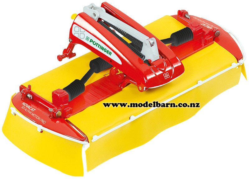 1/32 Pottinger Novacat 301 Alpha Motion Pro Front Mower. Made by Wiking. Features opening side guards, very nice detail. Attaches to the front & rear of most Wiking 1/32 tractors. This mower is 72mm long, 113mm wide & 38mm high.This item is not suitable for children.The tractor shown in the photos is not included.