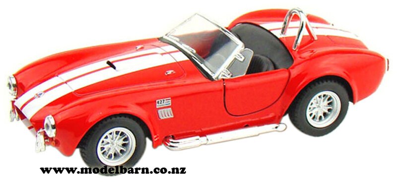 1/32 Shelby Cobra 427 S/C Car 1965. Made by Kinsmart. Features left-hand drive, opening doors, pull back action. This vehicle is 126mm long, 52mm wide & 39mm high.