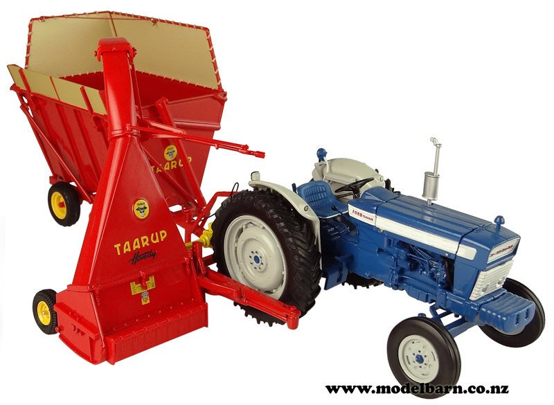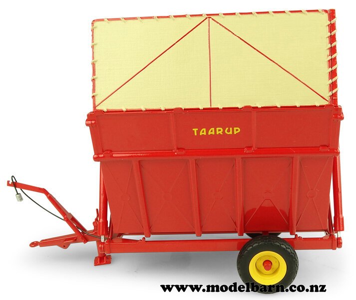 1/32 Taarup Tipvogn T3 Side Tipping Forage Trailer. Made by Universal Hobbies. Features side tipping body, precision detail. Attaches to most 1/32 tractors, & works with 1/32 Taarup DM1350 Forage Harvester. This tipping trailer is 121mm long, 64mm wide & 95mm high.