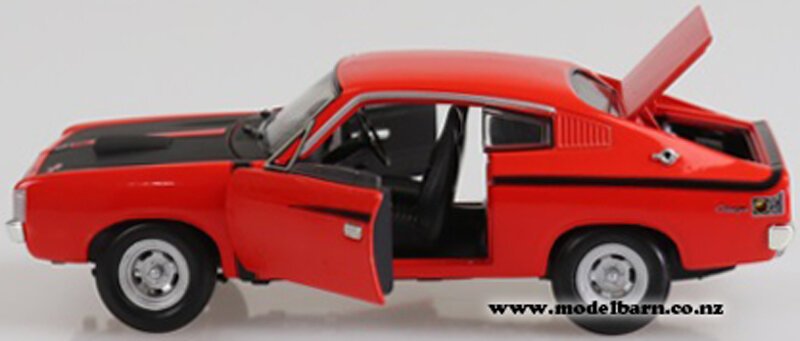1/32 Valiant VH Charger E38 R/T Car. Made by DDA Collectibles Australia. Decorated in "Red & Black" livery & features right-hand drive, steerable front wheels (not recommended though as the steering is fragile), detailed interior, opening doors, opening bonnet, detailed engine, opening boot, very nice detail. This vehicle is 145mm long, 59mm wide & 42mm high.This item is not suitable for children.