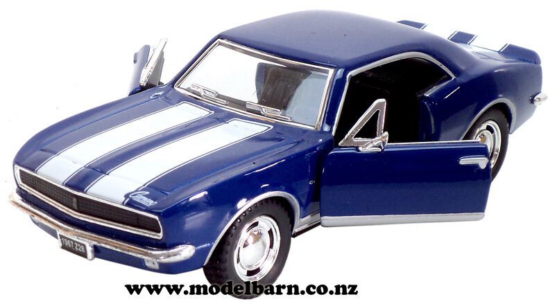 1/37 Chevrolet Camaro Z28 Car 1967. Made by Kinsmart. Features left-hand drive, opening doors, pull back action. This vehicle is 128mm long, 50mm wide & 36mm high.