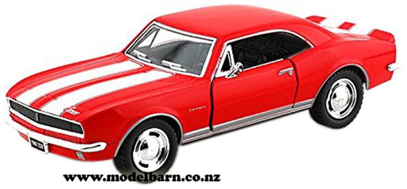 1/37 Chevrolet Camaro Z28 Car 1967. Made by Kinsmart. Features left-hand drive, opening doors, pull back action. This vehicle is 128mm long, 50mm wide & 36mm high.