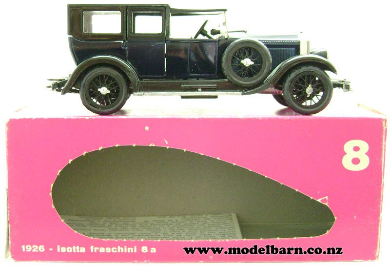 1/43 Isotta Fraschini Type 8A Coupe De Ville Car 1926. Made by RIO. Features right-hand drive, opening rear doors, good detail. This is a used item in good condition but may have small imperfections. The box is in good condition & has some marks & creases. Only 1 available. This vehicle is 128mm long, 44mm wide & 46mm high.This item is not suitable for children.The Isotta Fraschini Type 8A is a luxury car made by the Italian manufacturer Isotta Fraschini from 1924 until 1931. It was the successor to the Type 8 model, with a new 7.3-litre straight-eight engine to replace the 5.9-litre unit used in the previous model. This new engine could produce 115–160 PS (85–118 kW). This was the most powerful mass-produced straight-8 engine in the world at that time. The Type 8A was offered only with bare chassis and engine for the coachbuilders. The Isotta Fraschini car company promised that every car could do 150 km/h (93 mph). The car was very luxurious and it cost more than a Model J Duesenberg. Around one third of these cars were sold in the United States. The characteristic car body was made by Swiss manufacturer Carrosserie Worblaufen.