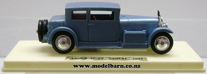 1/43 Voisin 17 CV Car 1934. Made by Solido as part of their "Age D'Or" series. Decorated in "Metallic Blue" livery & features right-hand drive, nice detail. This is a used item in very good condition but may have minor imperfections. Its box is in good condition but has marks, creases & tears. Only 1 available. This vehicle is 107mm long, 39mm wide & 36mm high & comes in a display case.This item is not suitable for children.The Voisin 17 CV is a car model series from the French automobile manufacturer Aéroplanes G. Voisin.
