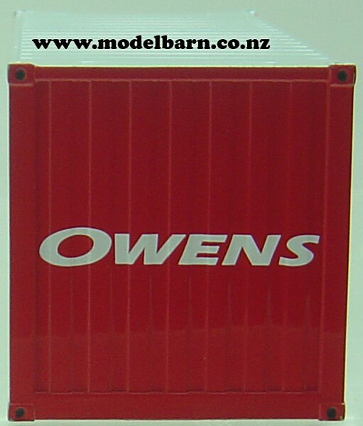 1/50 20ft "Owens" Shipping Container. Made by WSI Models. Features metal construction, nice detail. Attaches on selected 1/50 flat top & skeletal trailers & trucks. This container is 119mm long, 49mm wide & 52mm high.