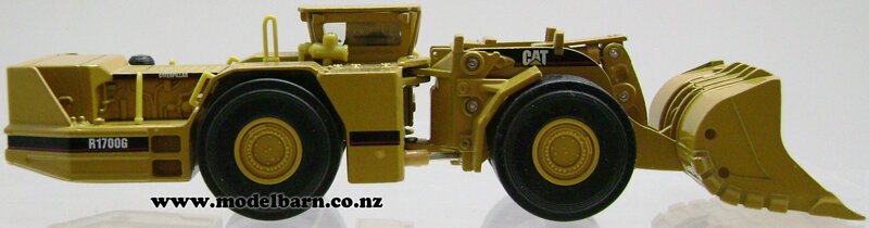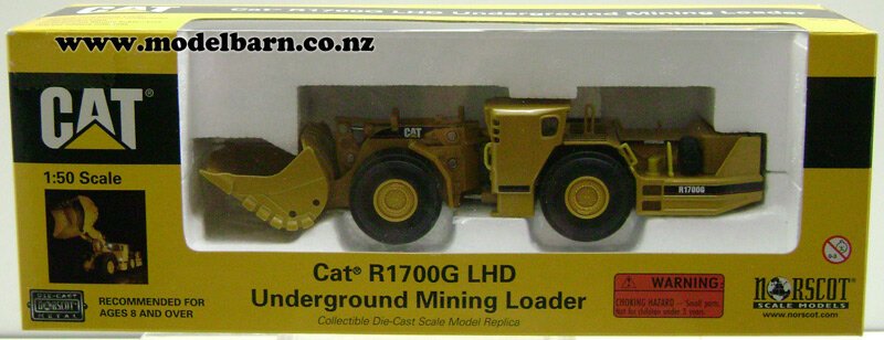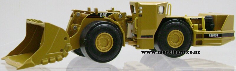 1/50 Caterpillar R1700G LHD Underground Wheel Loader. Made by Norscot in 2005. Features pivot steering, movable arms, tipping bucket, good detail. This is a used item in good condition but may have small imperfections. The box is in good condition but has marks & creases. Only 1 available. This loader is 220mm long, 53mm wide & 123mm high (when fully extended).This item is not suitable for children under 6.