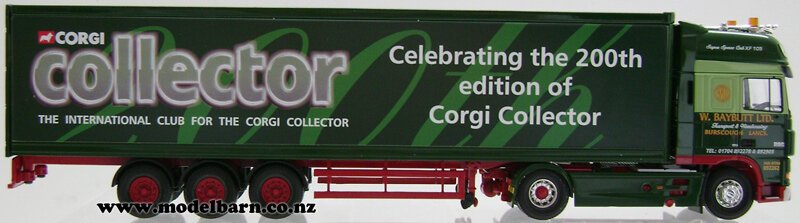 1/50 DAF XF 10 Prime Mover Truck & Semi Box Trailer. Made by Corgi in 2007 for "Corgi Collector Club" members. Decorated in "Baybutt of Burscough" livery & features right-hand drive, detachable trailer, nice detail. This is a used item in very good condition but may have some tiny imperfections. Its box is in very good condition but has some marks & blemishes. Only 200 have been made of this limited edition. Only 1 available. The mirrors are included in the package. Comes with collector's certificate. This set is 334mm long, 52mm wide & 86mm high.