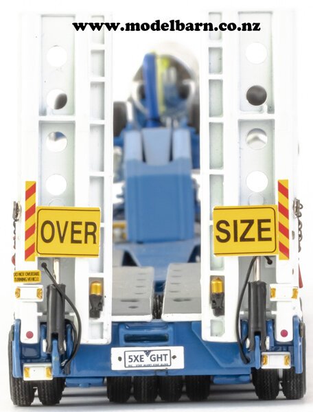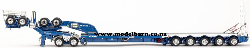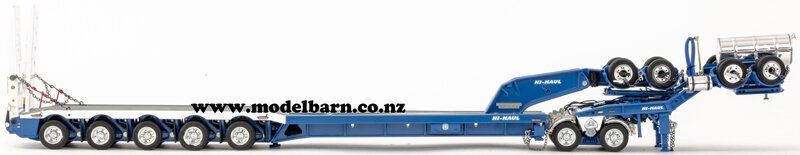 1/50 Drake 2-Axle Dolly & 5-Axle Swingwing Low Loader Trailer. Made by Drake Collectibles. Decorated in "Hi-Haul" livery, & features detachable dolly, expandable low bed, functioning ramps for loading & unloading, precision detail. Attaches to most 1/50 prime movers. This set is 420mm long, 87mm wide, & 76mm high (when fully extended).