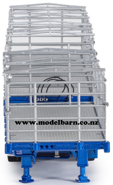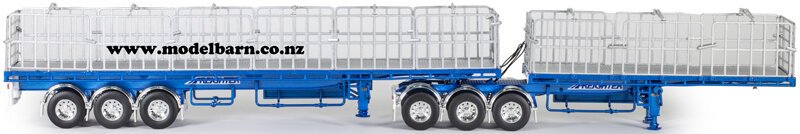 1/50 Freighter Flat Top B-Double Trailer Set. Made by Drake Collectibles. Decorated in "Metallic Blue" livery, & features detachable rear trailer, very nice detail. Attaches to most 1/50 prime movers. This is a used item in excellent condition. The box is in very good condition & has some marks & creases. Only 1 available. This set is 433mm long, 48mm wide, & 65mm high.This item is not suitable for children.