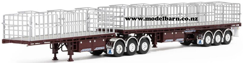 1/50 Freighter Flat Top B-Double Trailer Set. Made by Drake Collectibles. Decorated in "Vintage Burgundy" livery, & features detachable rear trailer, very nice detail. Attaches to most 1/50 prime movers. This is a used item in excellent condition. The box is in very good condition & has some marks & creases. Only 1 available. This set is 433mm long, 48mm wide, & 65mm high.This item is not suitable for children.