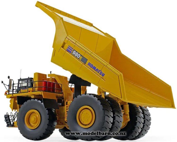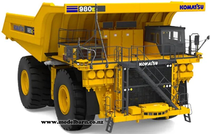 1/50 Komatsu 980E-AT Dump Truck. Made by First Gear. Features steerable front wheels, tipping body, heavy construction, metal hand rails, precision detail. This dump truck is 327mm long, 196mm wide & 275mm high (when fully extended).