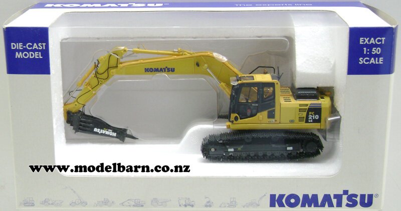 1/50 Komatsu PC210LC-8 Excavator with Hammer. Made by Universal Hobbies. Features rolling metal tracks, movable arms & hammer, rotating cab, precision detail. Only 1 available. This excavator is 240mm long, 60mm wide & 155mm high (when fully extended). This item is not suitable for children.This item is new. Its box is showing signs of wear.