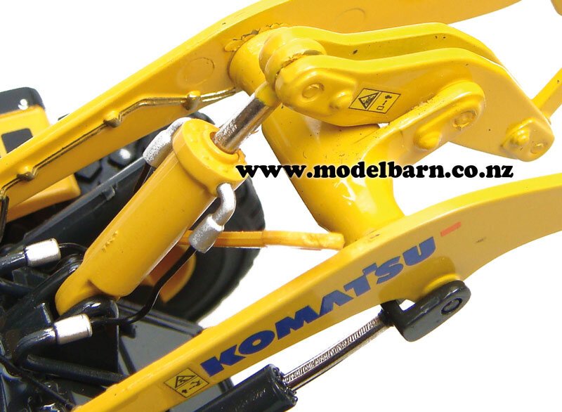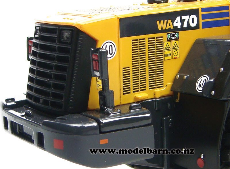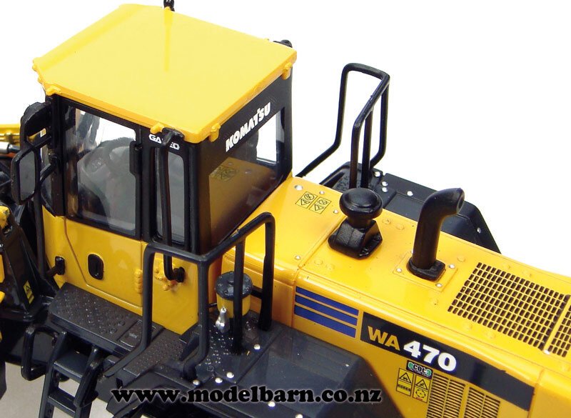 1/50 Komatsu WA470-6 Wheel Loader. Made by Universal Hobbies. Features pivot steering, movable arms & tipping bucket, very fine detail. Only 1 available. This wheel loader is 190mm long, 57mm wide & 97mm high (when fully extended).This item is not suitable for children.