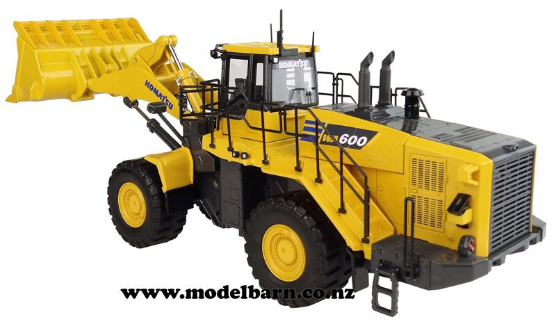 1/50 Komatsu WA600-8 Wheel Loader. Made by Universal Hobbies. Features pivot steering, movable arms & tipping bucket, precision detail. This wheel loader is 253mm long, 70mm wide & 125mm high (when fully extended).