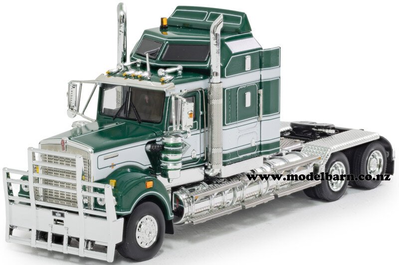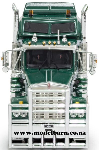 1/50 Kenworth T900 Legend Prime Mover Truck. Made by Drake Collectibles. Decorated in "Hi-Quality Heavy Haulage" livery & features right-hand drive, steerable front wheels (not recomended though as the steering is very fragile), opening doors, opening bonnet, detailed engine, precision detail. Attaches to most 1/50 semi-trailers. Only 500 have been made of this limited edition. Comes with Certificate of Authenticity. This prime mover is 184mm long, 55mm wide, & 84mm high.
