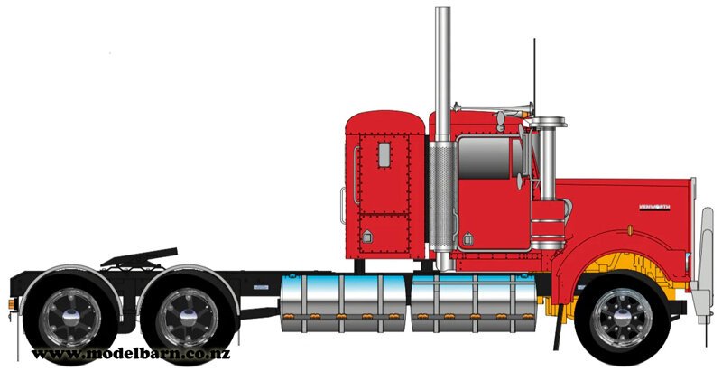 1/50 Kenworth W900 Flat Top Prime Mover Truck. Made by Iconic Replicas Ltd Australia. Decorated in "Rosso Red & Black" livery & features spider wheels, right-hand drive, steerable front wheels, opening bonnet, detailed engine, tilting bullbar, very nice detail. Attaches to most 1/50 semi trailers. This truck is 155mm long, 54mm wide & 81mm high.This item is not suitable for children.