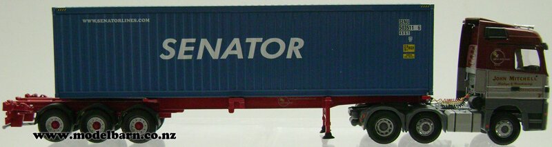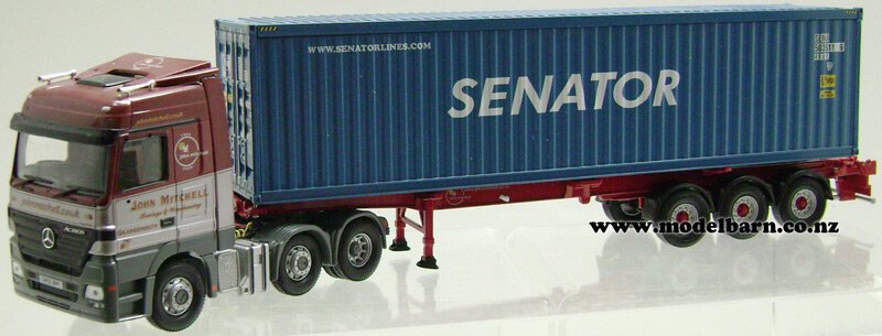 1/50 Mercedes Actros Prime Mover & Semi Skeletal Trailer & Container "John Mitchell"
