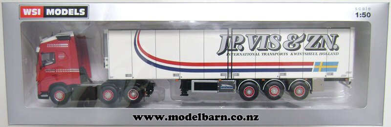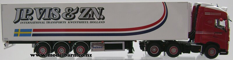 1/50 Volvo FH4 Globetrotter Prime Mover Truck & Semi Refer Trailer. Made by WSI Models. Decorated in "JP VIS & ZN BV" livery. Features left-hand drive, steerable front wheels, tilting cab, detailed engine, detachable trailer, very nice detail. This is a used item in good condition but may have small imperfections. The box is in good condition & has some marks & creases. Only 1 available. This set is 337mm long, 60mm wide, & 80mm high.This item is not suitable for children.