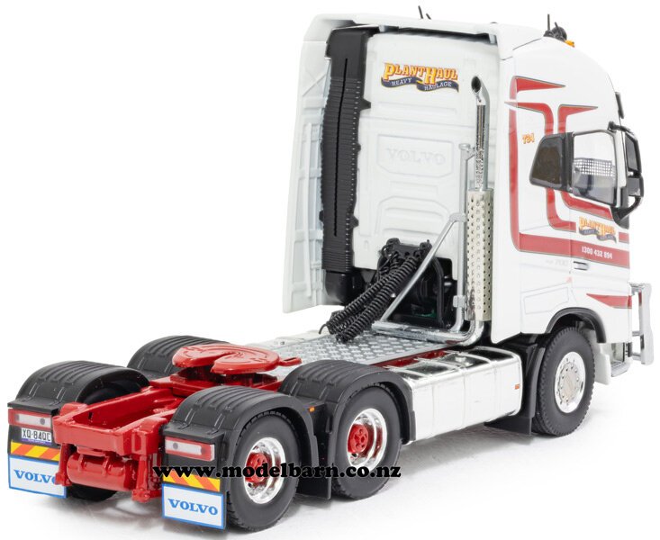 1/50 Volvo FH4 Globetrotter XL Prime Mover Truck. Made by WSI Models for Drake Collectibles. Decorated in "Plant Haul Heavy Haulage" livery. Features right-hand drive, steerable front wheels, tilting cab, opening bullbar, detailed engine, very nice detail. Attaches to most 1/50 semi-trailers. This prime mover is 142mm long, 63mm wide, & 83mm high.This item is not suitable for children.