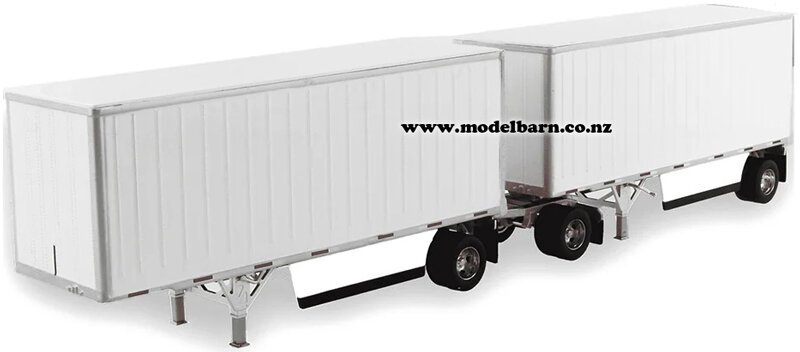 1/50 Wabash Double Box 20' Trailers Set. Made by Diecast Masters as part of their "Transport" series. Decorated in "White" livery, & features detachable trailer, detachable rear dolly, opening rear trailer doors, nice detail. Attaches to most 1/50 prime movers. This double trailer set is 370mm long, 52mm wide & 83mm high.This item is not suitable for children.