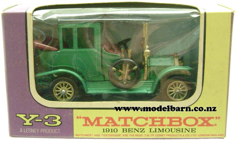 1/54 Benz Limousine Car 1910. Made by Matchbox from 1970 - 1973 as part of their "Models of Yesteryear" series. Features right-hand drive, nice detail. This is a used item in good condition but may have small imperfections. The box is in good condition & has some marks, creases, & fading. Only 1 available. This vehicle is 83mm long, 36mm wide & 45mm high.
