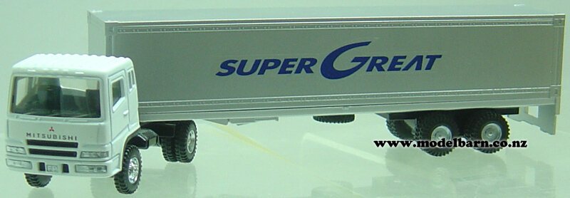 1/58 Mitsubishi Super Great Prime Mover & Semi Box Trailer (white & silver)