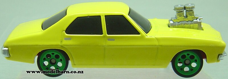 1/64 Holden HQ Sedan Car. Made by Oz Wheels as part of their "Redbellies" range. Decorated in "Yellow" livery & features a blown engine, nice detail. This vehicle is 75mm long, 29mm wide & 22mm high.This item is not suitable for children under 5.