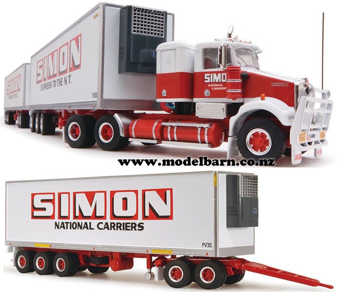 1/64 Kenworth SAR Prime Mover Truck with 3 Refer Road Train Trailers Set "Simon National Carriers"