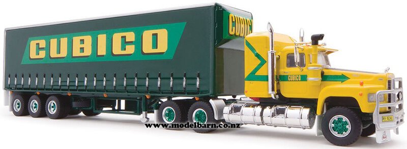 1/64 Mack Value-Liner Prime Mover Truck with Freight Semi Trailer. Made by Highway Replicas as part of their "Freight Semi" series. Decorated in "Cubico" livery & features right-hand drive, detachable trailer, very nice detail. Comes with Certificate of Authenticity. This set is 271mm long, 40mm wide & 67mm high.This item is not suitable for children.This item will be in stock in April 2026.Price is yet to be confirmed although it is expected to be under $150.If you wish to back order this item, please contact us.