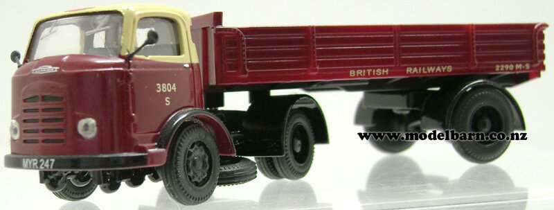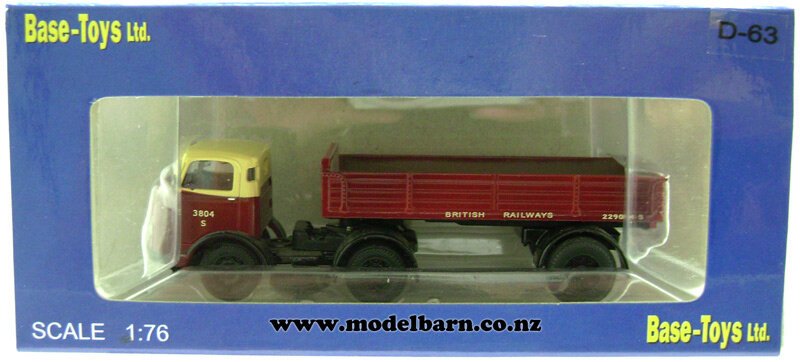1/76 Karrier Bantam Prime Mover Truck & Single Axle Dropside Semi Trailer. Made by Base Toys. Decorated in "British Railways" livery & features right-hand drive, nice detail. This is a used item in good condition but may have small imperfections. Its box is in good condition but does have some marks, blemishes & creases. Only 1 available. This set is 102mm long, 31mm wide & 30mm high.This item is not suitable for children.