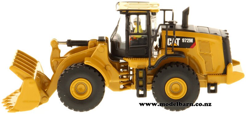 1/87 Caterpillar 972M Wheel Loader. Made by Diecast Masters as part of their "High Line" series. Features pivot steering, movable arms & tipping bucket, nice detail. Comes with operator in the cab. This wheel loader is 102mm long, 35mm wide & 41mm high.This item is not suitable for children.