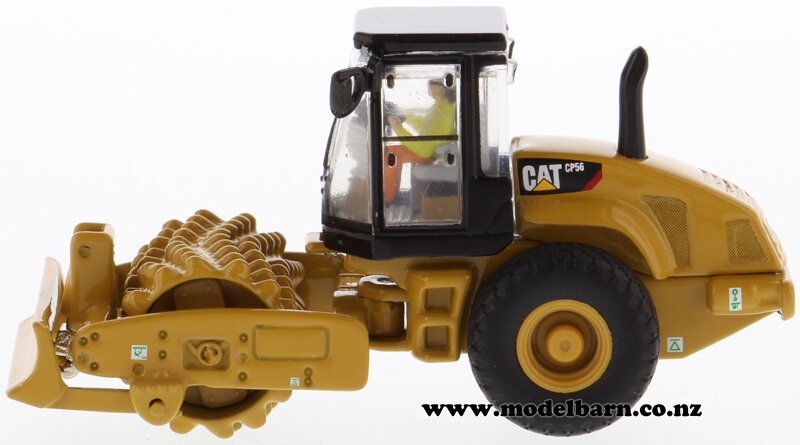 1/87 Caterpillar CP56 Articulated Sheepsfoot Roller. Made by Diecast Masters as part of their "High Line" series. Features pivot steering, movable blade, great detail. Comes with operator in the cab. This roller is 73mm long, 29mm wide & 37mm high.This item is not suitable for children.
